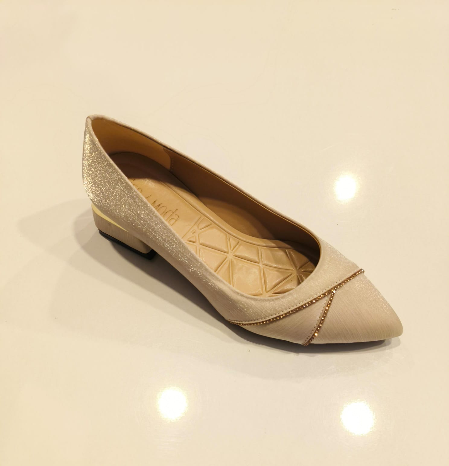 Krem taşlı topuklu ayakkabı
