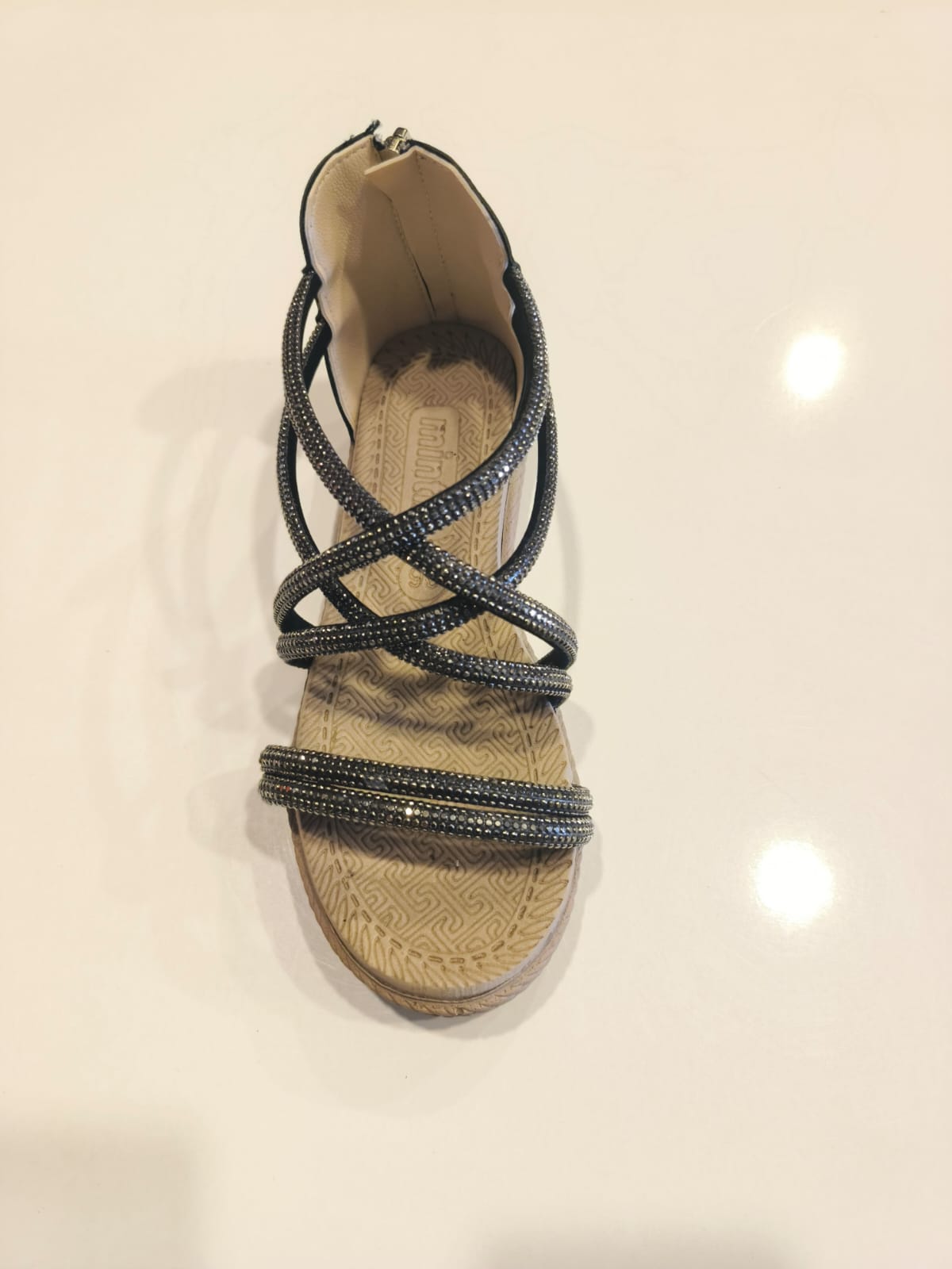 Taş detaylı gri sandalet