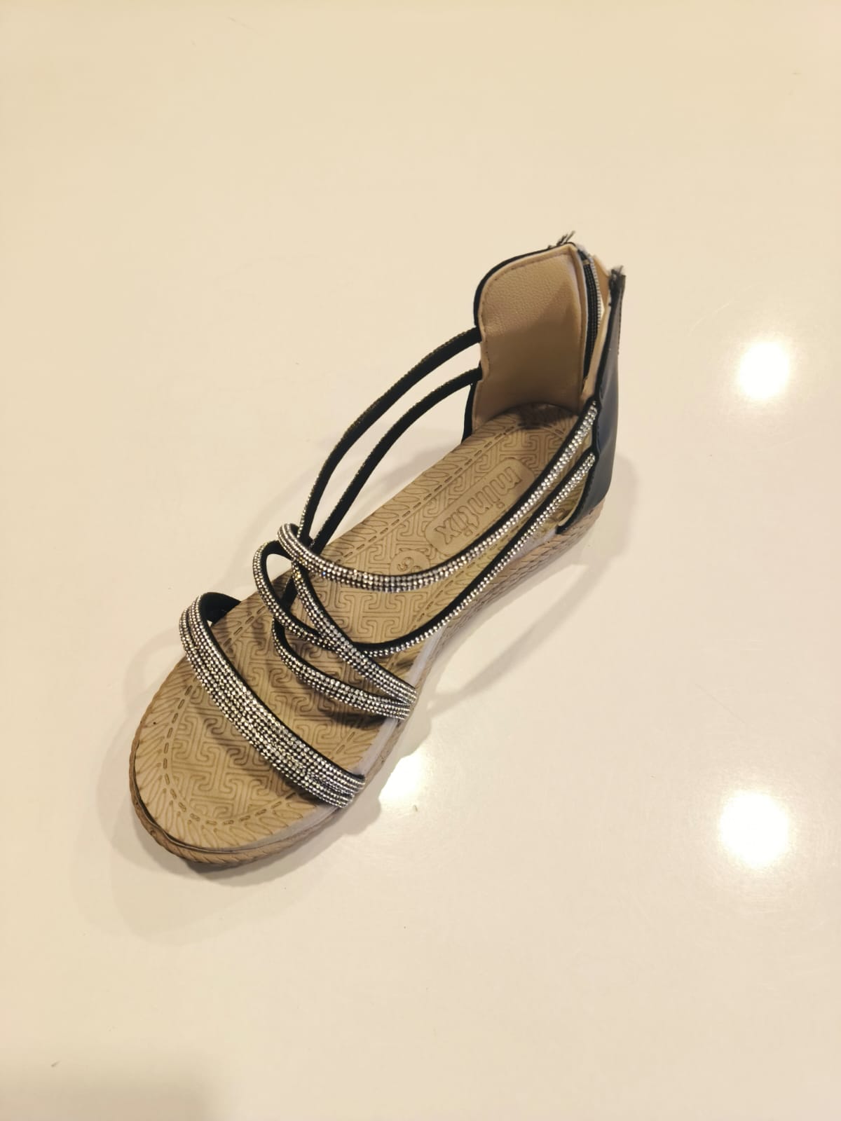 Taş detaylı siyah sandalet