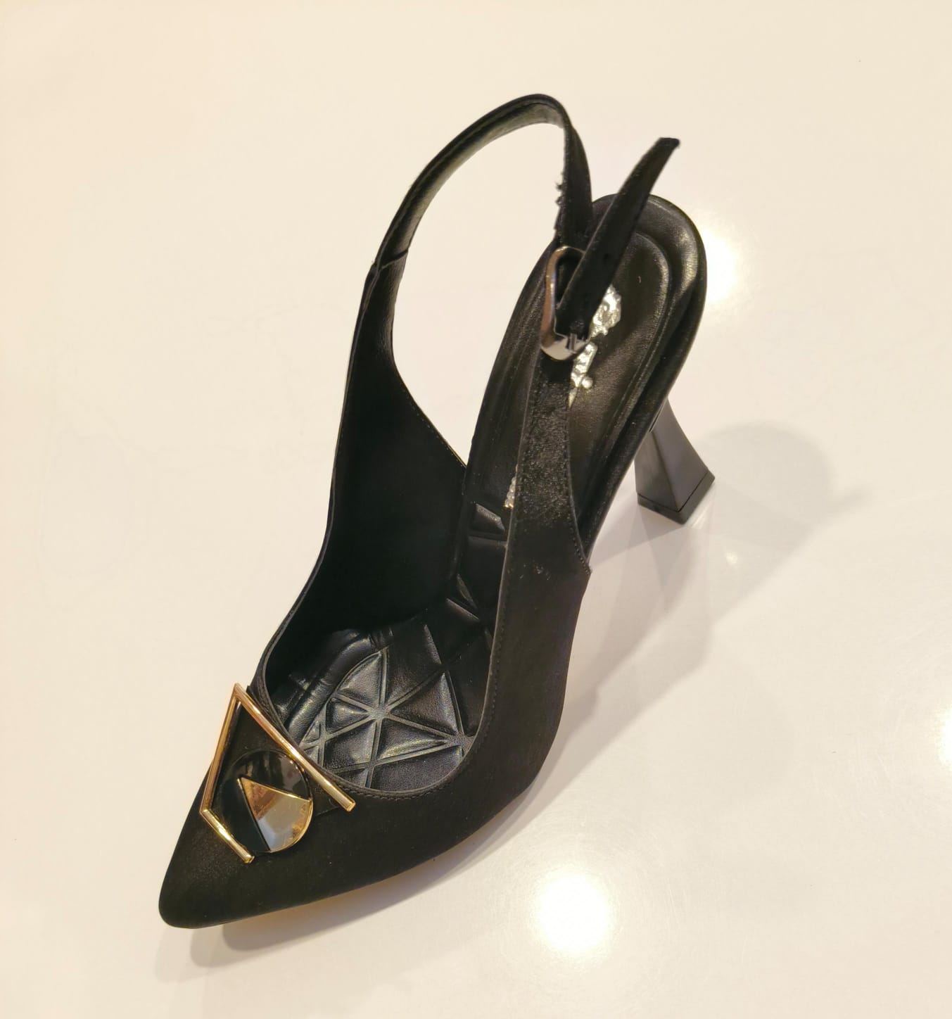 Altın detaylı siyah topuklu ayakkabı